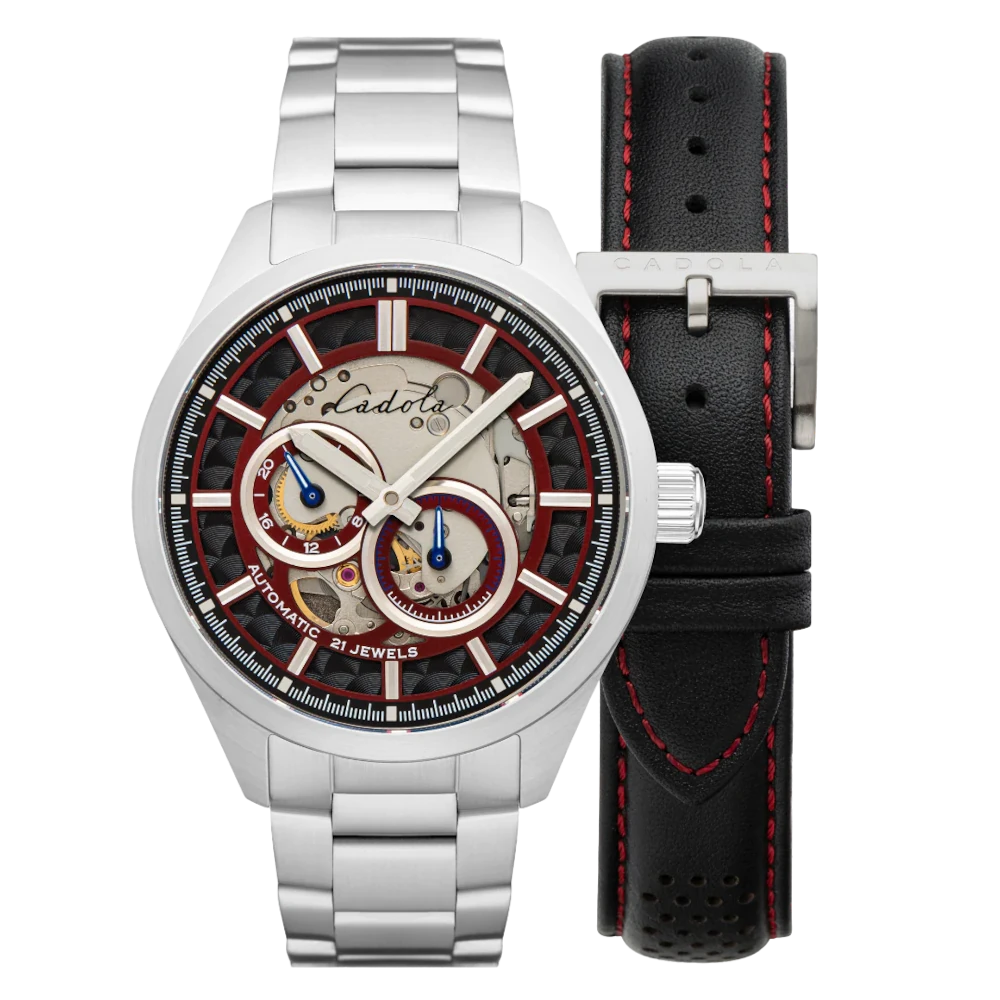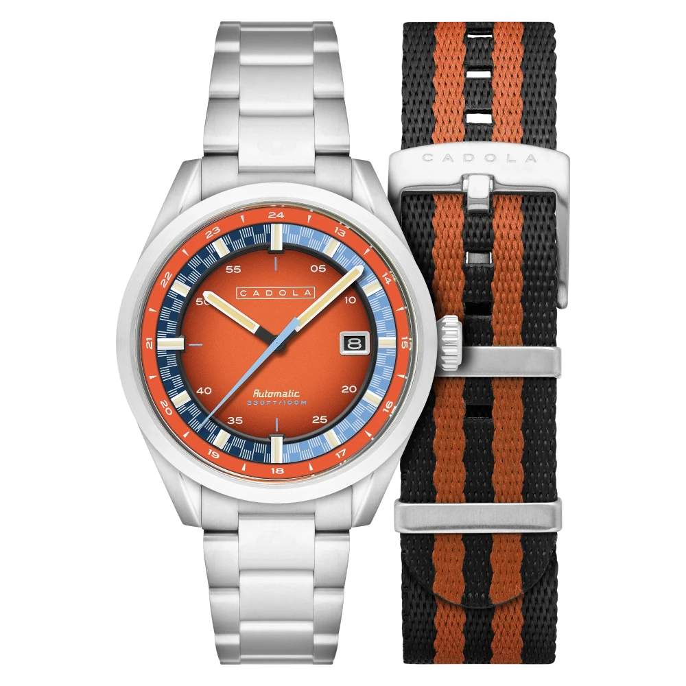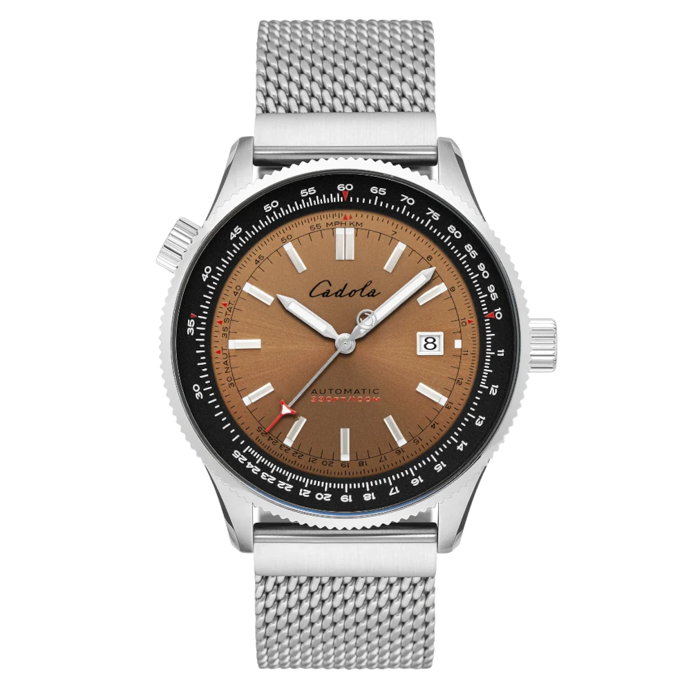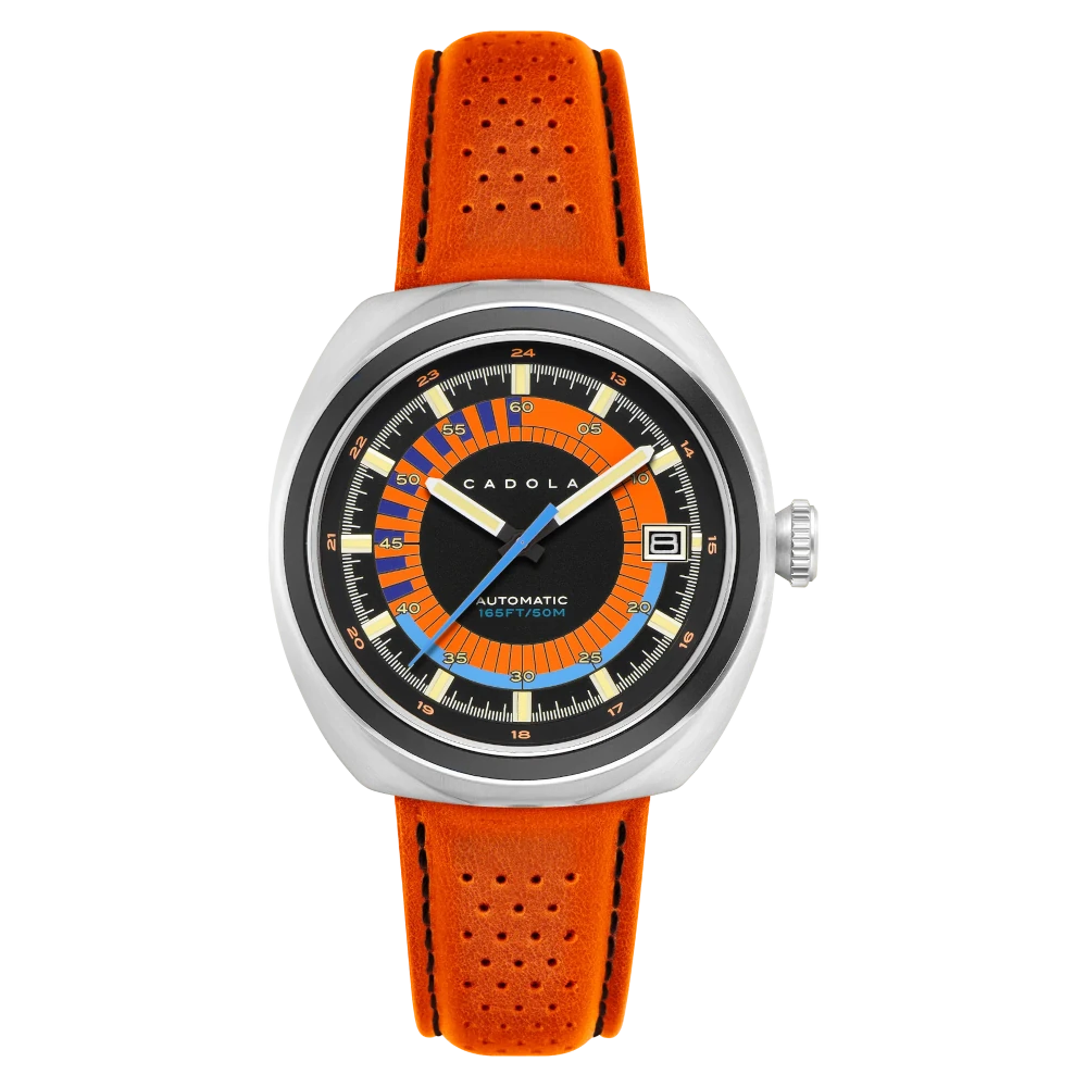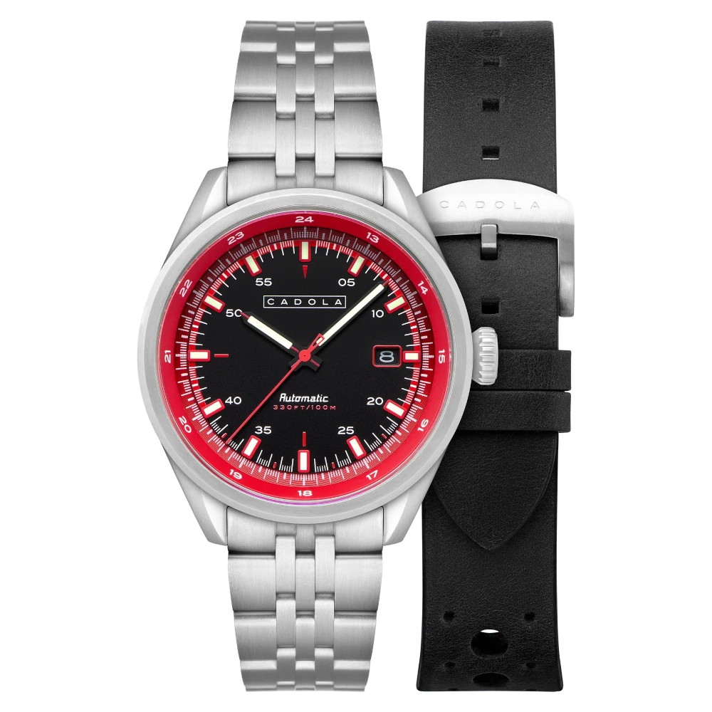 Cadola AviateurGiuliaGuichetIntrepidNoumeaPaddockPistaPista # 24-hour dial# 24-hour rehaut# Crown at 4 o'clock# Cushion# Dual-crown# Hong Kong# Motorsports# Pilot watches# Racing# Slide-rule bezel# Small second# Sport watches# Sunray# Vintage